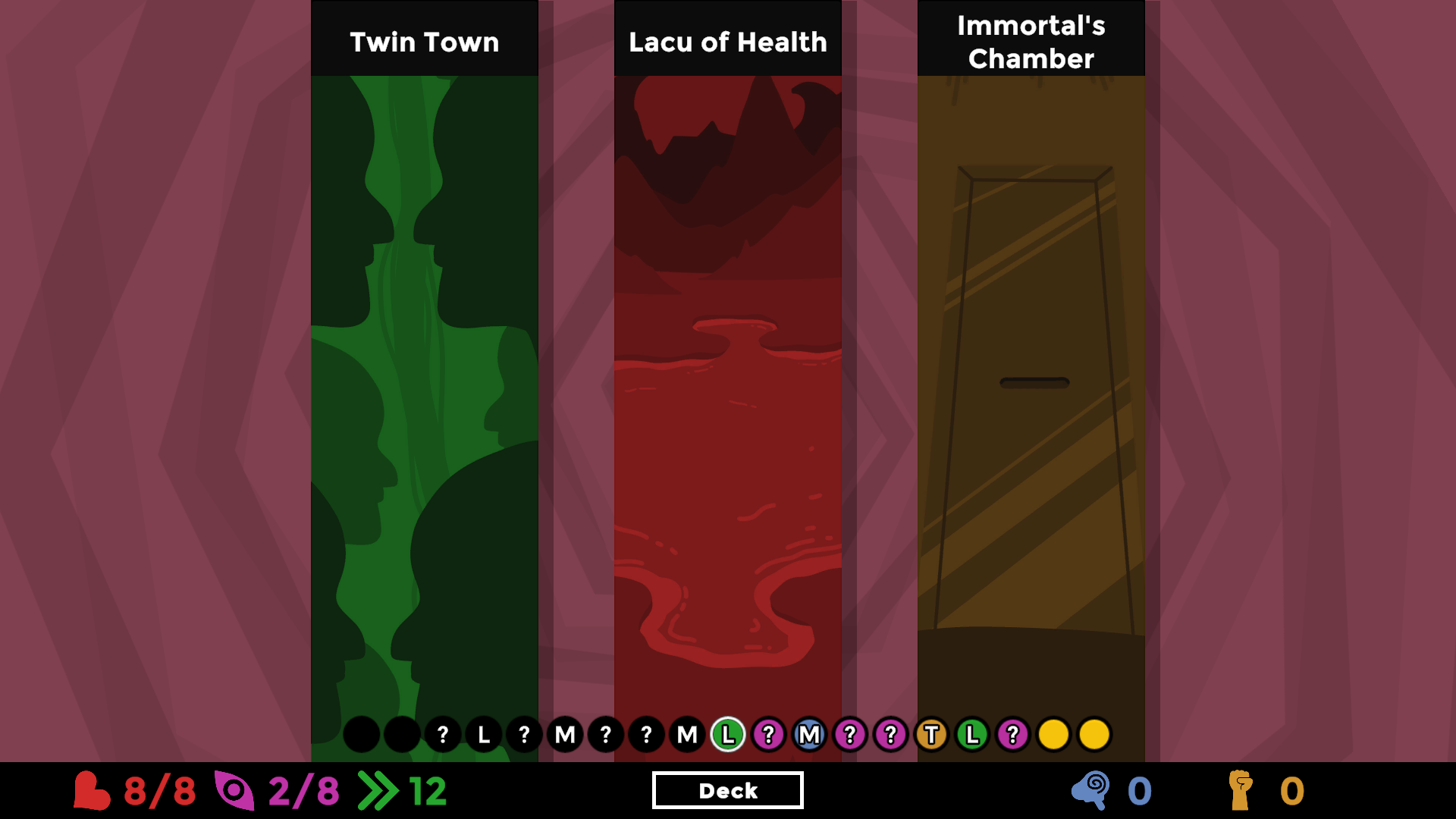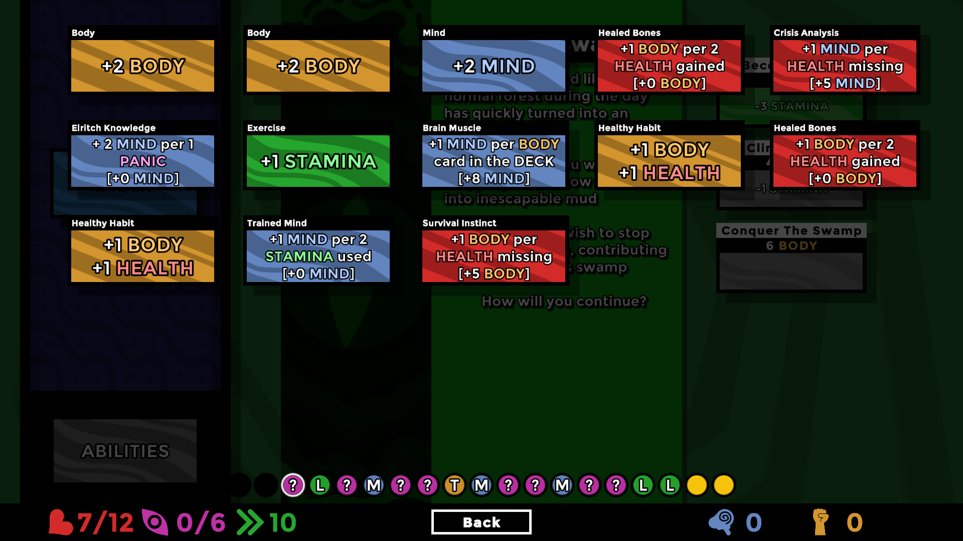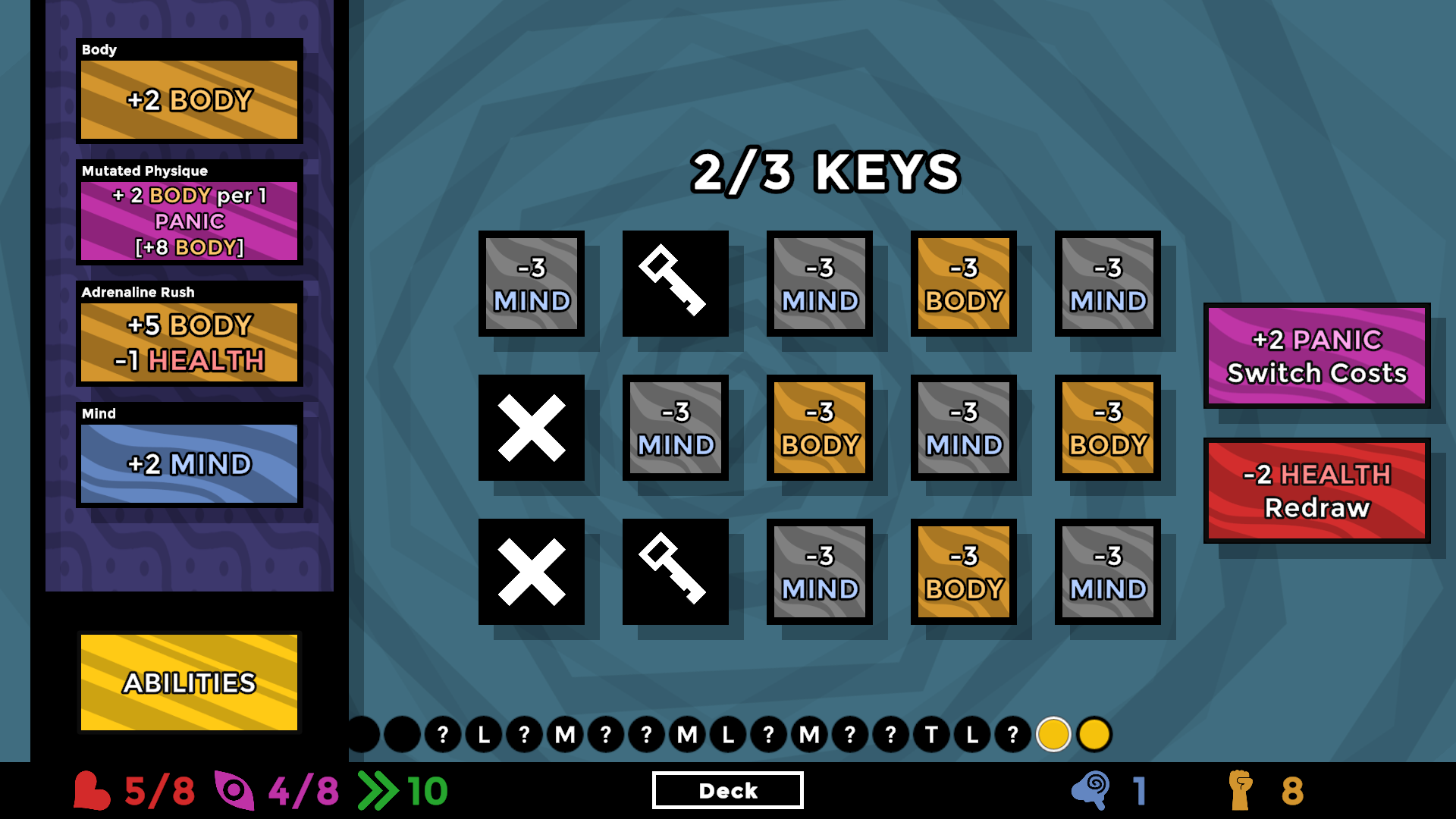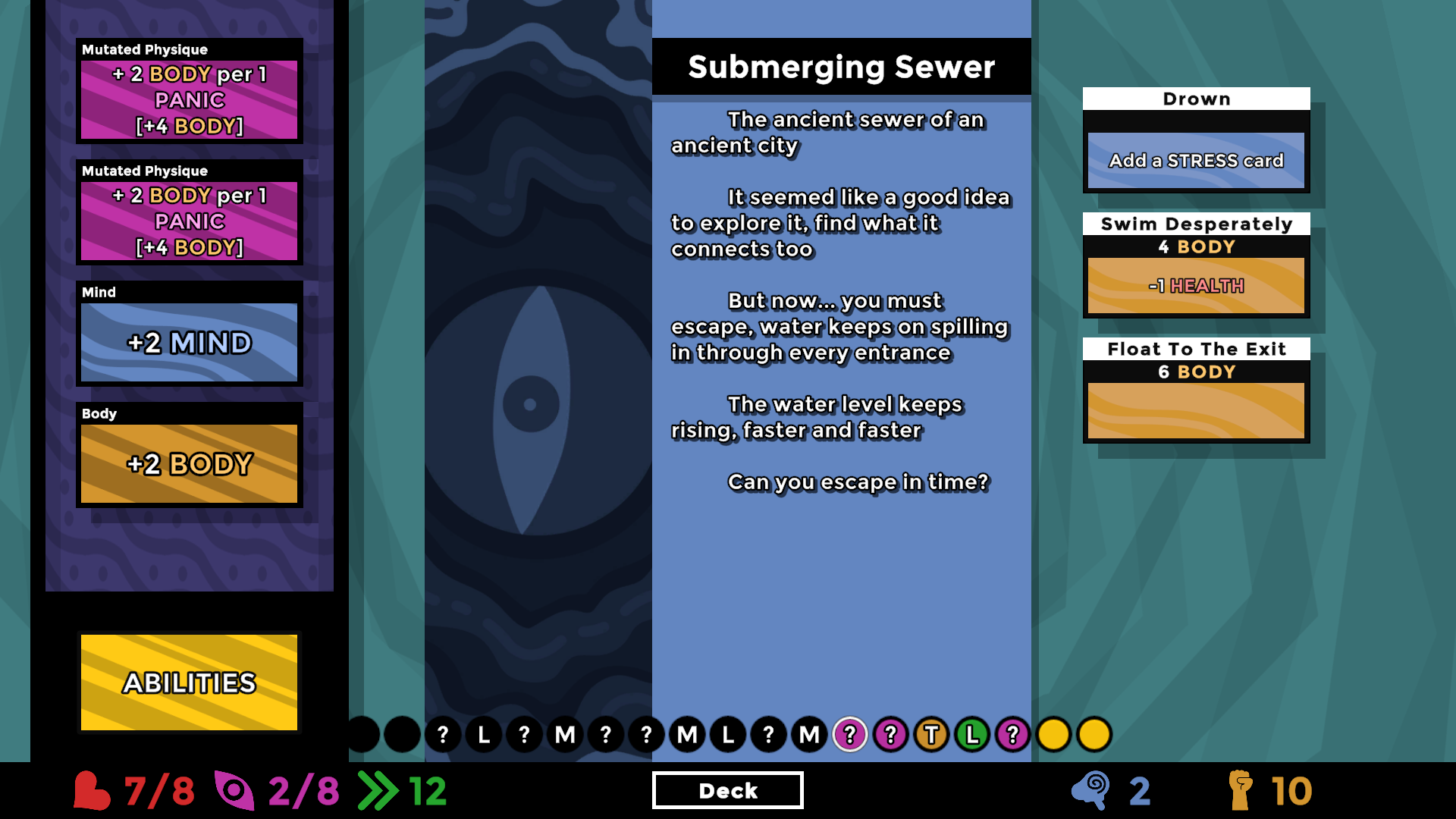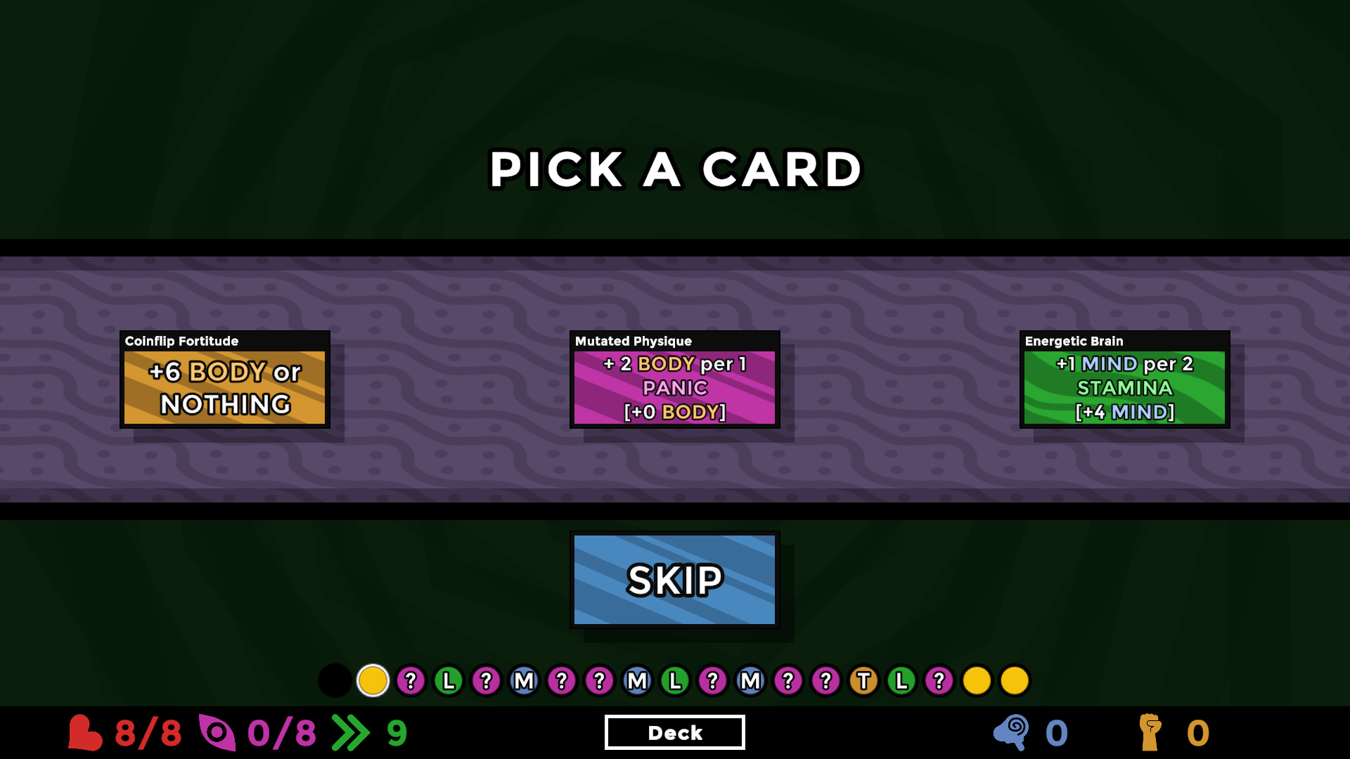 A roguelite deck builder where you must reach enlightenment before dying or losing your mind